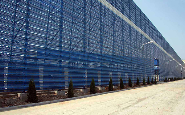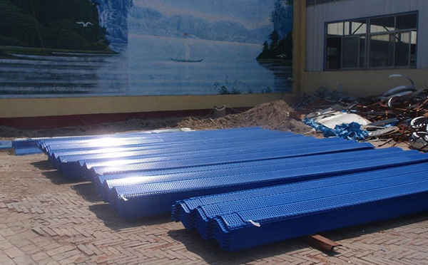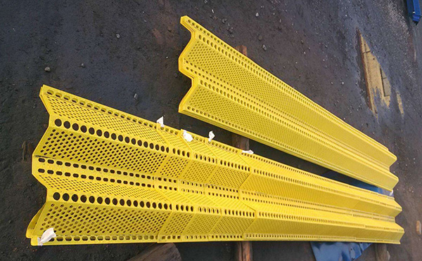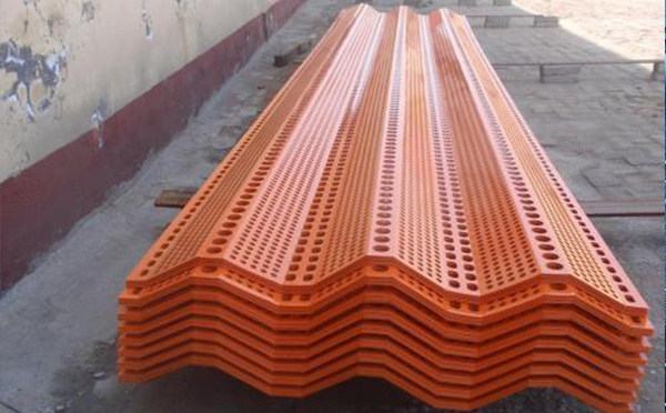 防風(fēng)抑塵板的板材厚度0.5mm-1.5mm之間,均是由數(shù)控設(shè)備進(jìn)行沖孔,成型,再進(jìn)行雙面高壓靜電粉末噴涂的表面抗腐蝕處理而成。